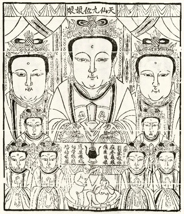 ▲图1 北京民间民俗纸马《碧霞元君》分身像